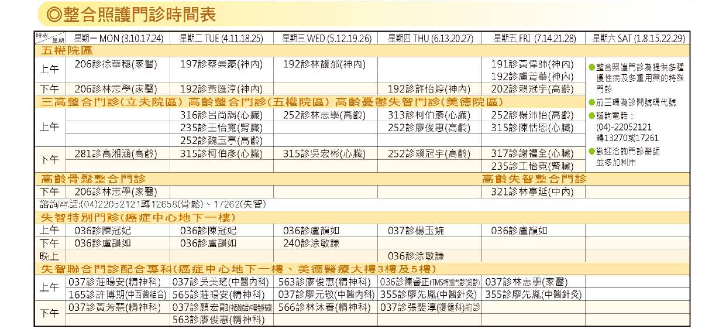 ※輝躍門診採約診制特約門診,預掛號請撥打(04)2205-2121#17605連絡約診時間,並檢視聯絡電話是否正確,謝謝。
